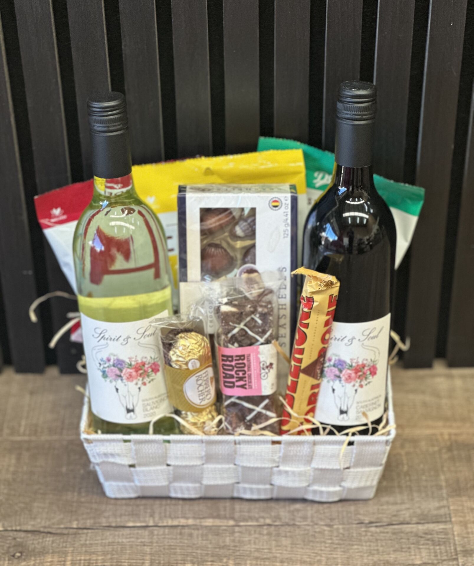 The Wine & Chocolate Lovers Basket contains:
